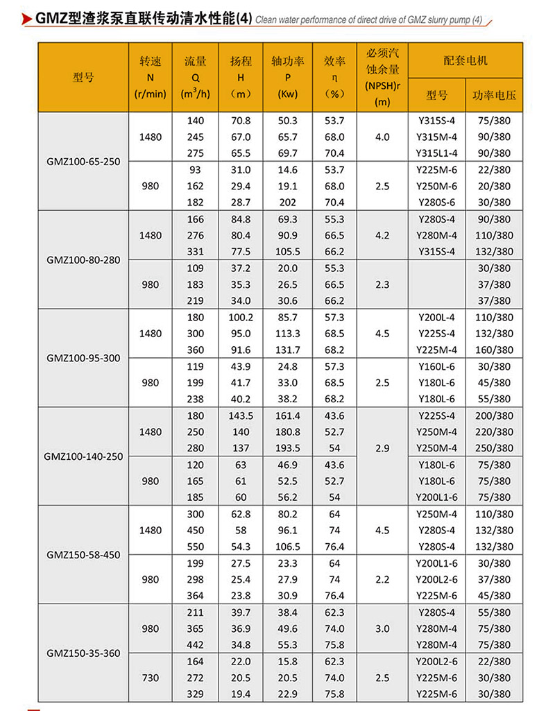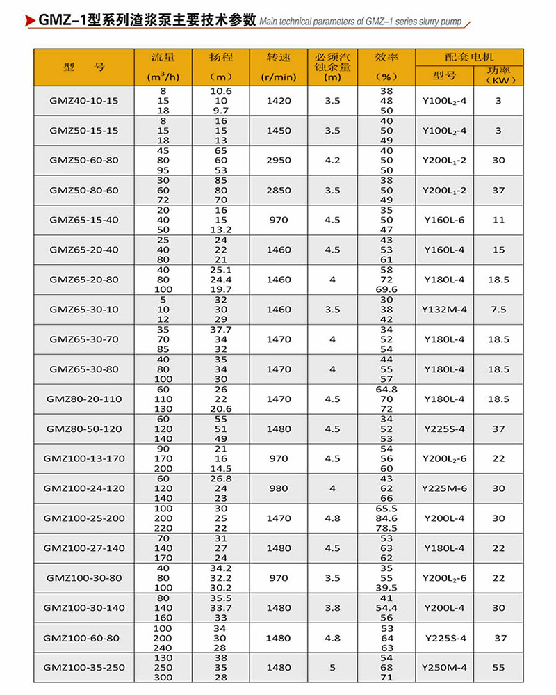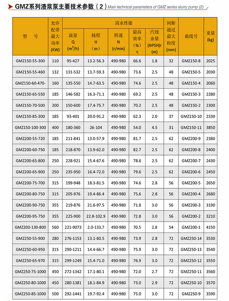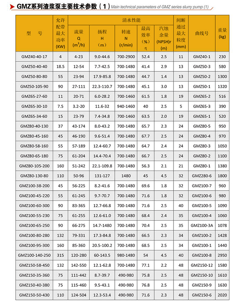 GMZ型泵,過流部件采用高強度耐磨材質,適用于輸送強磨蝕、高濃度、大顆粒的渣漿,在泵的最大工作壓力范圍內,可以多級串聯使用。