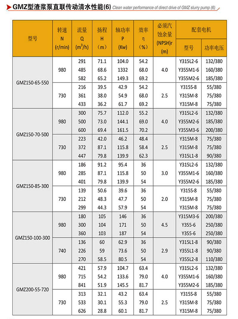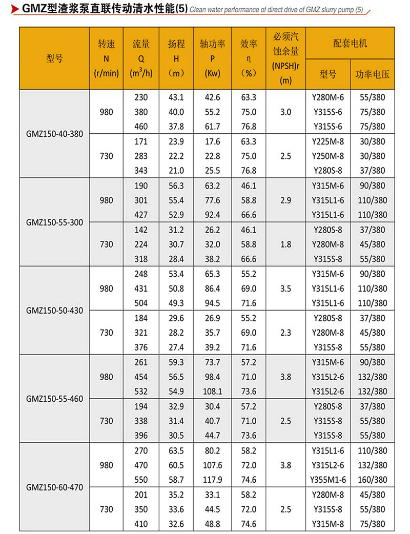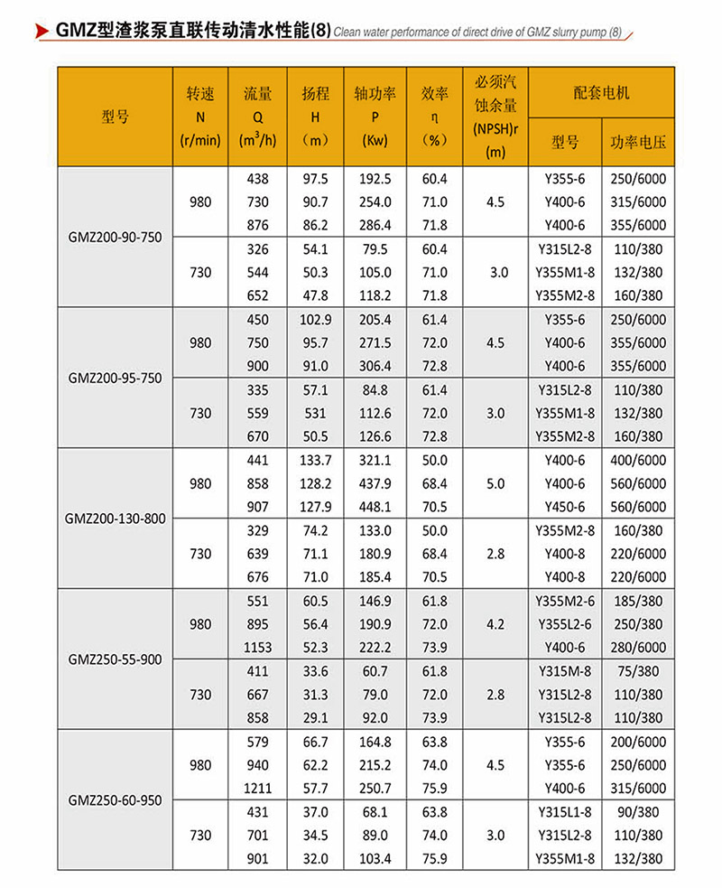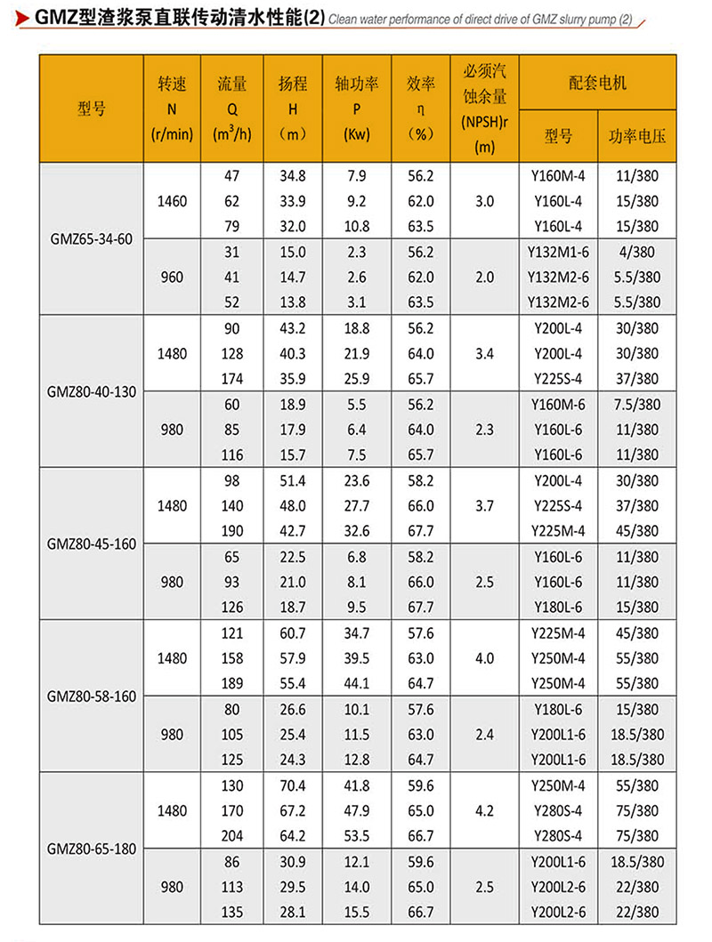 GMZ型泵,過流部件采用高強度耐磨材質,適用于輸送強磨蝕、高濃度、大顆粒的渣漿,在泵的最大工作壓力范圍內,可以多級串聯使用。
